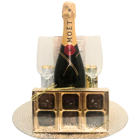 This gorgeous golden tray comes with all that's needed for an elegant day of celebration for two! Great for weddings, or any classy commemoration!