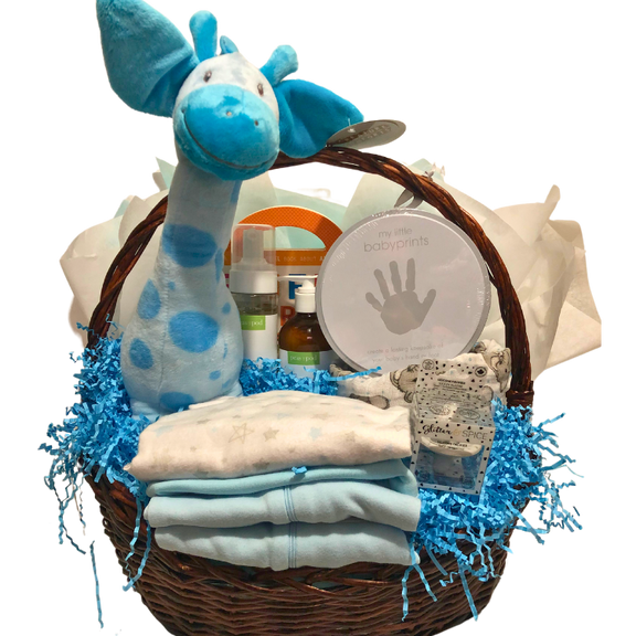 Welcome the newest little bundle of joy with this thoughtfully arranged gift, filled with cozy essentials and keepsakes for baby’s first moments. Designed for comfort and care, this set is a perfect way to celebrate a growing family.
