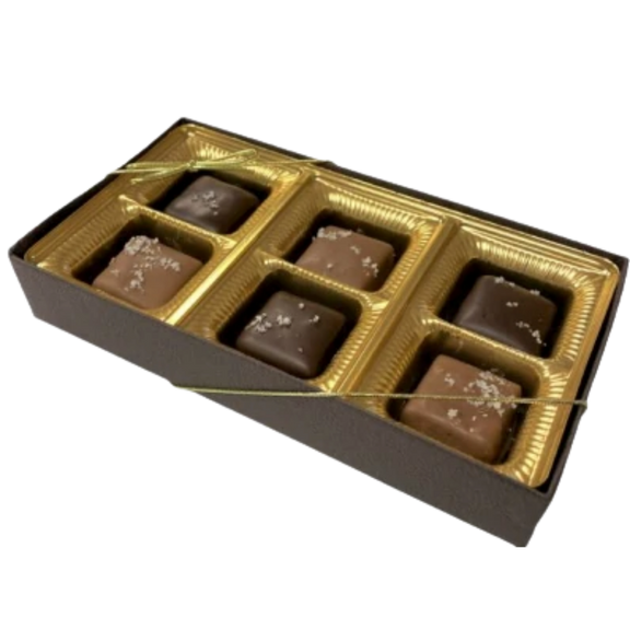 Decadent dark and milk chocolate caramels with a touch of sea salt, for that perfect balance of salty sweet. A delicious addition to any gift!
