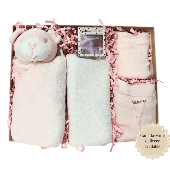 The Sweet Beginnings Baby Gift Box is a beautifully presented collection of cozy essentials designed to welcome a new baby with warmth, comfort, and care. Thoughtfully arranged in a keepsake gift box, this charming set is perfect for Canada-wide delivery, corporate baby gifting, and sending love from afar when you want a meaningful gift without the guesswork.